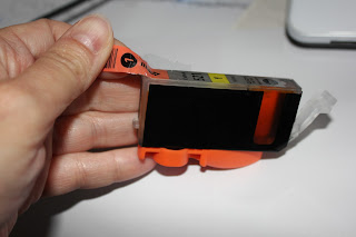 – Lo primero y más importante es cambiar bien el cartucho de impresión. Cuando coloquemos un cartucho nuevo, SIEMPRE se quita primero el adhesivo que tapa el deposito de tinta: