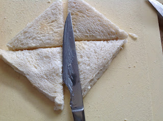 1.- Tostamos el pan, si no esta la parte externa dura es mucho más complicado cortarlo