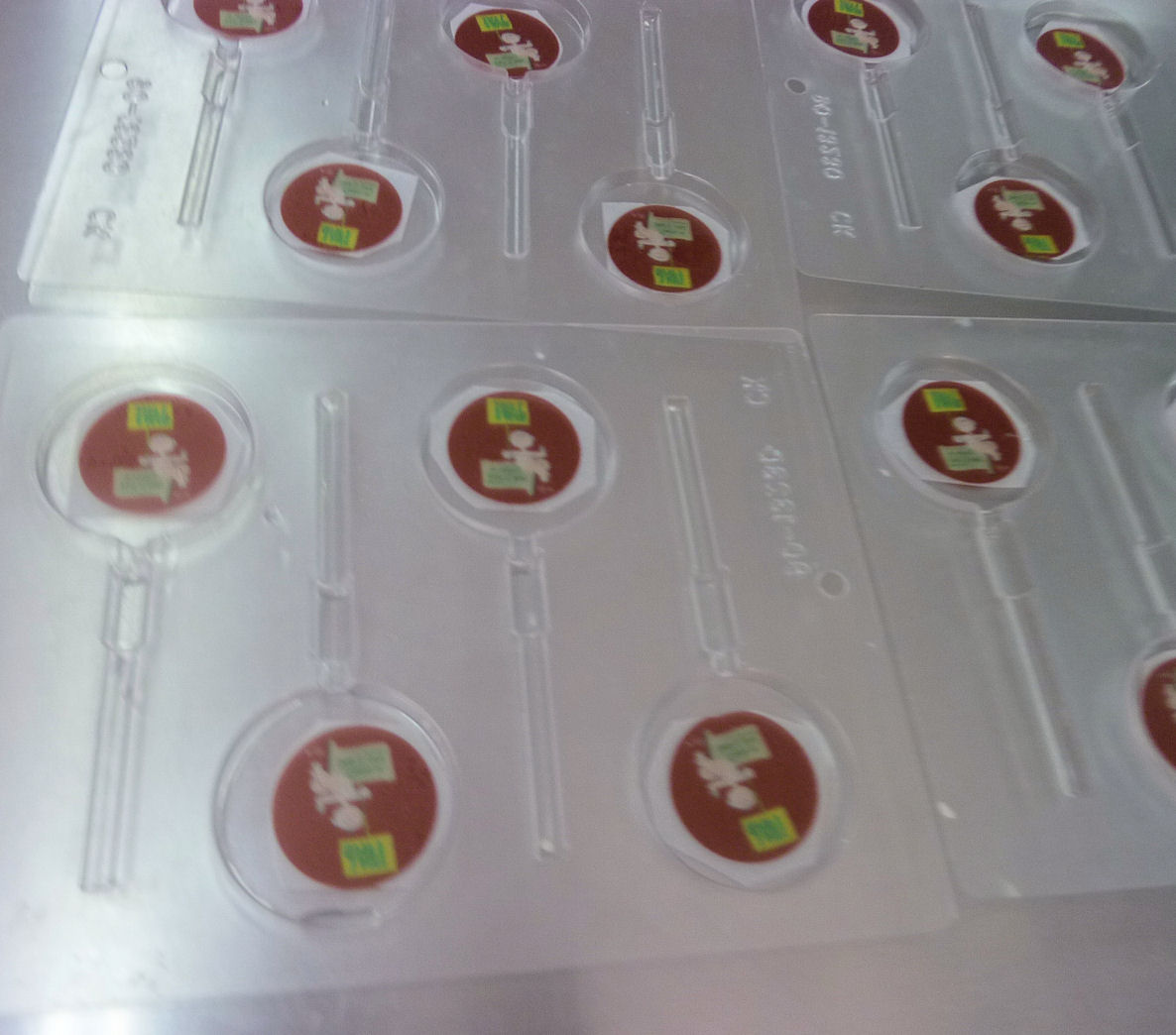 Metemos en el congelador para que se enfrien y desmoldamos, por último quitamos el acetato. Todo el proceso se puede ver en este vídeo:
